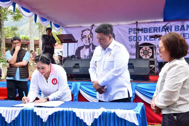 Baca juga: Menteri Pariwisata Turun Langsung ke Samosir, Sinyal Kuat Menuju Destinasi Wisata DuniaBupati Samosir Vandiko T. Gultom merasa bangga dengan segala bantuan yang diberikan keluarga besar Menteri PKP. Terlebih dengan adanya bantuan sembako yang dapat langsung dirasakan masyarakat Tomok. Mobil ambulance yang diserahkan akan dicatat sebagai aset Pemkab. Samosir dan digunakan untuk kepentingan masyarakat. "Tidak ada kata lain selain kata terima kasih yang sebesar-besarnya kepada keluarga besar Opung Sondang yang membantu masyarakat Samosir, yang selalu memperhatikan dan mengingat bonapasogitnya . Mobil ini akan kami optimalkan untuk kebutuhan masyarakat" ucap VandikoVandiko menuturkan, sebelumnya sudah dilakukan revitalisasi/ renovasi makam Raja Sidabutar juga telah merenovasi toilet yang tentunya memberi kenyamanan bagi wisatawan dan berdampak pada peningkatan kunjungan wisatawan ke Samosir. "Ada juga pengembangan UMKM dengan melatih masyarakat Samosir untuk dapat memberdayakan eceng gondok, hasilnya memuaskan dan kami akan melanjutkan pendampingan dan pelatihan supaya tidak berhenti sampai disini , agar bisa berkembang dan meningkatkan ekonomi komunitas" kata VandikoSemua bantuan yang diberikan saat ini, kata Vandiko menjadi penyemangat bagi pemerintah dan masyarakat Samosir untuk lebih mencintai dan berbuat yang lebih baik untuk Kabupaten Samosir. "Orang tua kita sudah memberi contoh untuk selalu memperhatikan dan merawat Kabupaten Samosir maka cinta kita sebagai masyarakat Samosir harus lebih besar lagi, berbuat bagaimana Samosir untuk dapat lebih sejahtera ke depan dan nama Tuhan yang dipermuliakan di Kabupaten Samosir" tambah VandikoDalam kesempatan ini, Bupati Samosir berharap melalui dorongan dan perhatian opung Sondang Sidabutar, berbagai program pusat dapat terlaksana di Samosir, baik dalam merawat dan melestarikan budaya yang ada, terutama dengan wewenang menteri PKP untuk revitalisasi rumah layak huni. "Terima kasih opung atas perhatian ini dan saya berharap dukungan opung tidak berhenti disini. Kami juga mohon dukungan Ibu Shinta untuk memberi perhatian melalui program Bapak Menteri untuk merevitalisasi rumah tidak layak huni yang memang dibutuhkan masyarakat" pinta Vandiko penuh harap.Shinta Maruarar Sirait mengatakan sudah saatnya membantu ibu-ibu yang ada di Samosir menambah penghasilan melalui kerajinan dengan merubah eceng gondok menjadi berguna. "Saya pikir eceng gondok dapat menjadi penghasilan bagi ibu-ibu untuk meningkatkan penghasilan. Selain kompos , eceng gondok akan kita berdayakan sebagai kerajinan yang memiliki nilai tambah" kata ShintaUntuk menambah keterampilan dalam mengolah eceng gondok, Shinta menyebutkan telah mendatangkan tenaga terampil dan terlatih untuk melatih para pengrajin. "Ada 30 orang sudah dilatih. Semoga terus berlatih dan saya akan terus melakukan pendampingan. Maka ibu-ibu harus semangat berlatih dan tidak menyerah" Ungkapnya.Untuk peningkatannya, Shinta mengajak Pemkab. Samosir memberi perhatian guna peningkatan dari segi kualitas dan daya saing.(Sts)