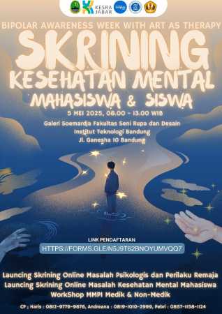 Baca juga: Legislatif Jawa Barat Tinjau Kesiapan USB Sidamulih,Peserta yang terlibat berasal dari berbagai kalangan, seperti pelajar, mahasiswa, tenaga pendidik, penyintas bipolar, hingga masyarakat umum.Rangkaian acara dimulai dengan diskusi panel pada 2 Mei, dilanjutkan dengan kompetisi debat, karya ilmiah, dan lomba poster bertema kesehatan mental pada 3 Mei.Hari ketiga diisi dengan sesi edukatif seputar _self-love, mindfulness_, dan tantangan kesehatan mental masa kini. Pada 5 Mei, kegiatan difokuskan pada skrining kesehatan mental serta workshop untuk tenaga medis dan non-medis.Acara ditutup pada 6 Mei dengan kegiatan “Ruang Aman” yang menghadirkan sesi berbagi, _healing, mindfulness_, serta workshop terapi seni.Melalui kolaborasi ini, Pemda Provinsi Jawa Barat berupaya menciptakan ruang aman dan inklusif bagi para penyintas gangguan bipolar untuk berekspresi dan pulih, sekaligus mempromosikan seni sebagai medium terapi yang berdampak dan penuh makna.Informasi lebih lanjut dan pendaftaran kegiatan dapat diakses melalui tautan: https://forms.gle/N5J9T62BNOYUMVQQ7(Ril)